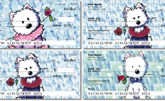 Cute westie artwork from PUP artist Kim Niles adorns these checks with […]